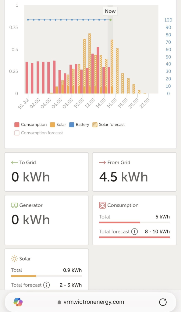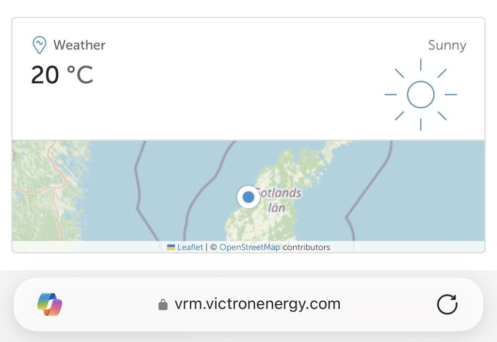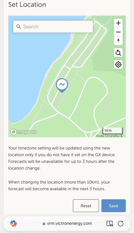 1. Solcellerna, behöver ju ha rätt position för att kunna visa en forecast, vilket man normalt går in i Victron VRM och uppdaterar/sätter manuellt. Inte längre!